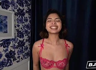 Petite Lily Jordan is reaching for that big dick, ready for blowjob and facial! 😍
