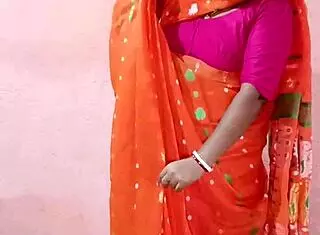 intriguing saree-clad curvy indian bbw brunette teases her chubby beauty