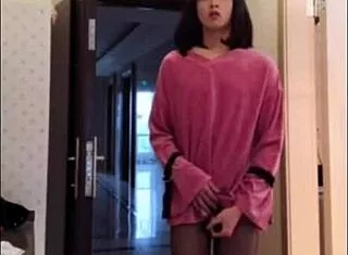 Asiatische Ladyboy Zaza wichst solo im Crossdressing