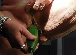 granny's hairy pussy pulses wildly on cucumber thrust