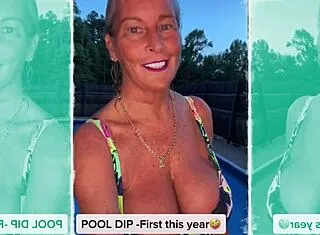 busty bikini granny enjoys a fun activity with a black partner