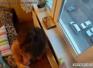 in the bath husband strokes while wife dildo vibrates on glass wall moaning shaved
