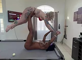 blonde sports doctor deepthroats bbc during hardcore anal threesome workout
