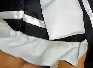 Petite 18+ cosplay maid bends over for anal masturbation with gaping hole