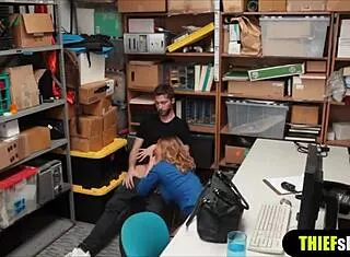 lucky mall officer punishes sweet princess burglar in garage shop!