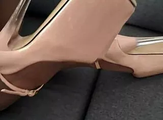 Step-mom intensely pleasures legs in pantyhose heels