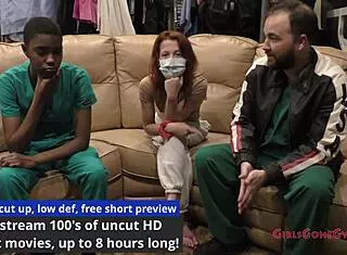 testing latex GLOVES on tanned nurse patient's small tits backstage