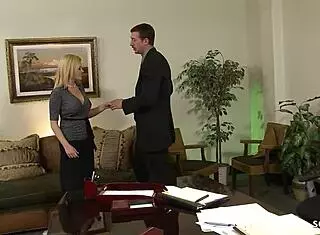 milf boss jamie michelle fucks embarrassed intern in femdom sex at work