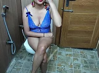 hindi stepmom catches sneaky 18+ teen stepson, loves toilet dirty talk ride
