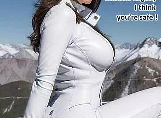 ski resort leather catsuit babe jerks off public in snow!