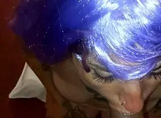 she slips on the wig then gags deep on that cock