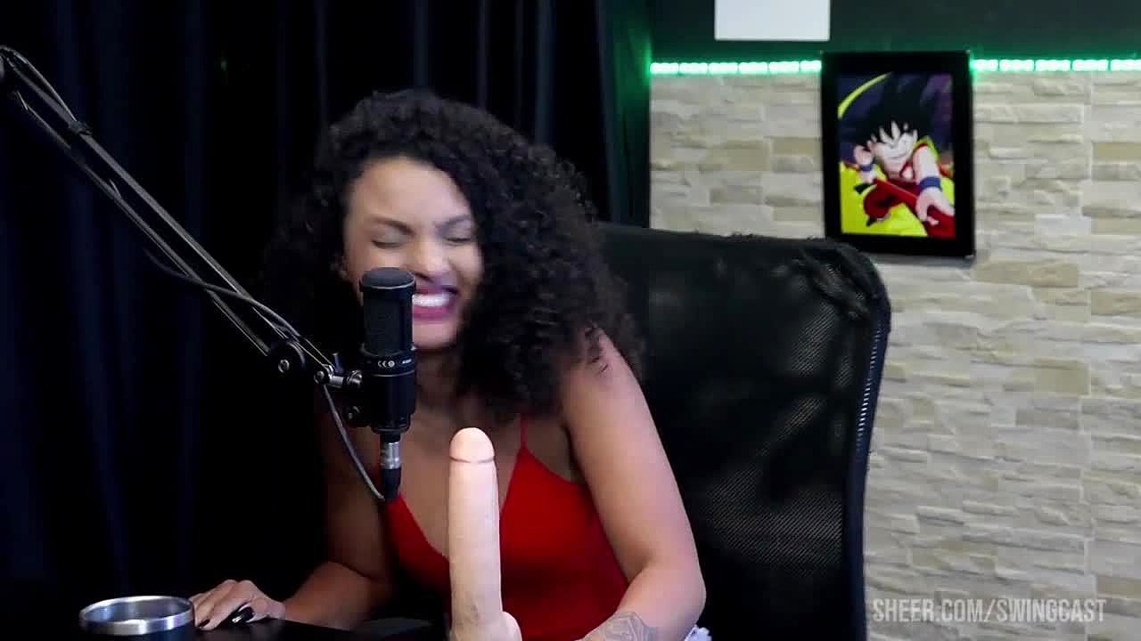 Morena safada strips naked, flaunting her tits before getting her pussy licked after admitting she loves fingering men's asses—her thing is swearing during sex in swing cast sheer red.