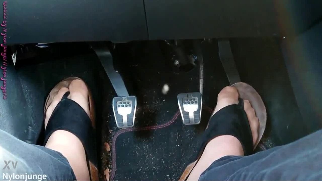 Hot Brunette Shows Nylon Feet on the Street